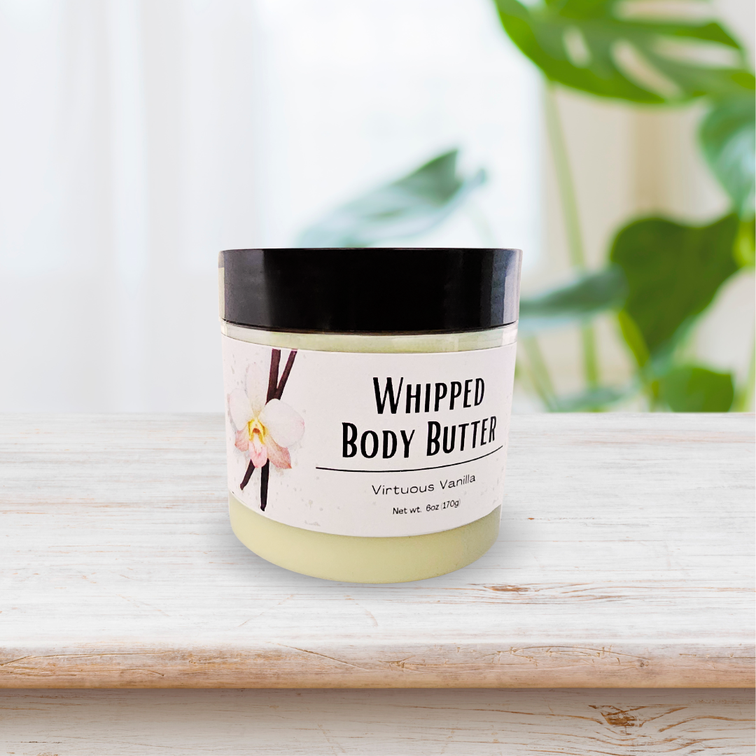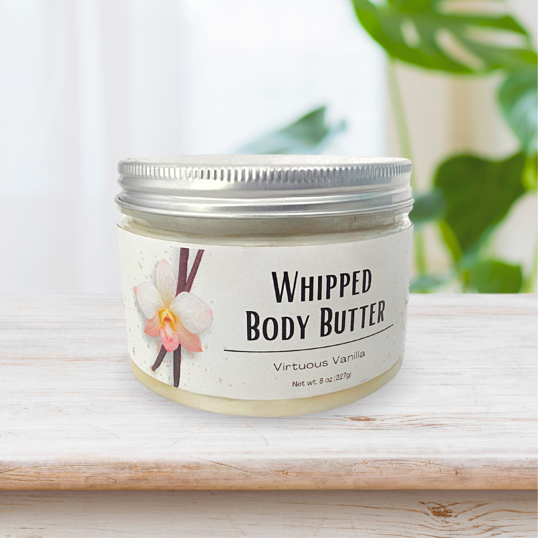 Indulge in the luxurious experience of our Virtuous Vanilla Body Butter. Made with only vegan and organic ingredients, this handcrafted body butter will leave your skin feeling nourished and deeply moisturized. With the delicate scent of vanilla, it's a guilt-free treat for your skin.