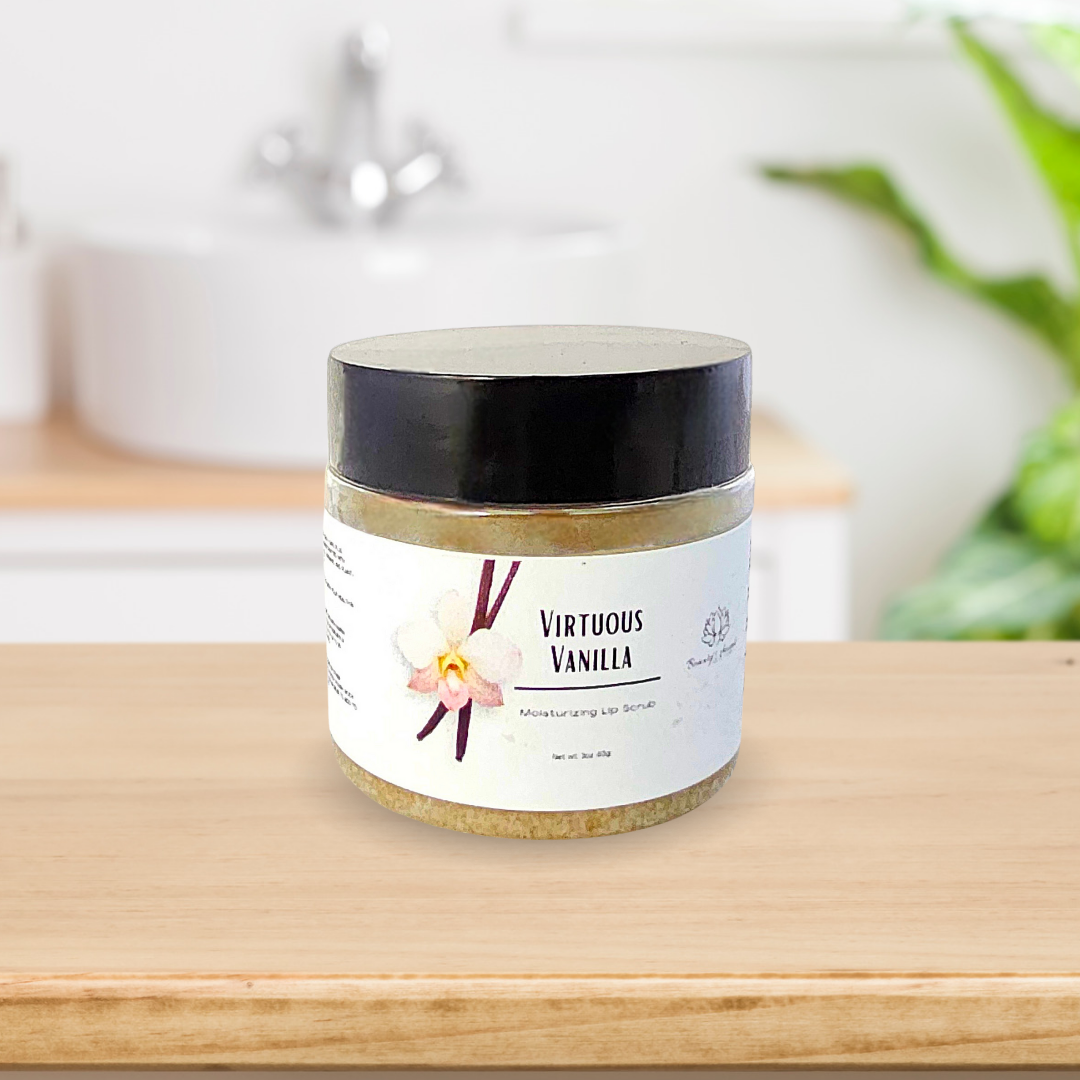 INGREDIENTS: Pure Cane Sugar, Shea Butter, Extra Virgin Olive Oil, Jojoba Oil, Apricot Oil, Glycerin, Vitamin E Oil, Vanilla Essential Oil